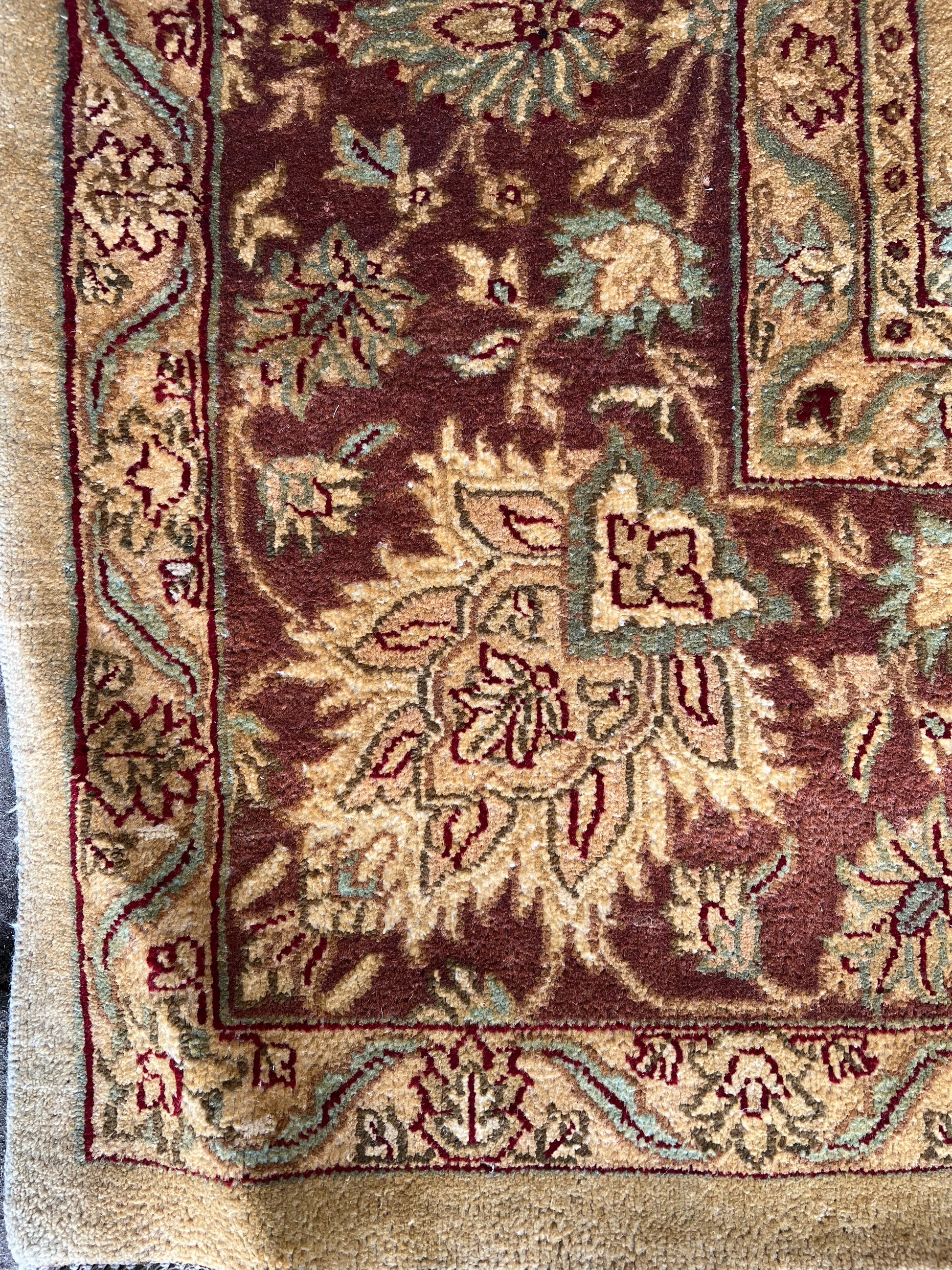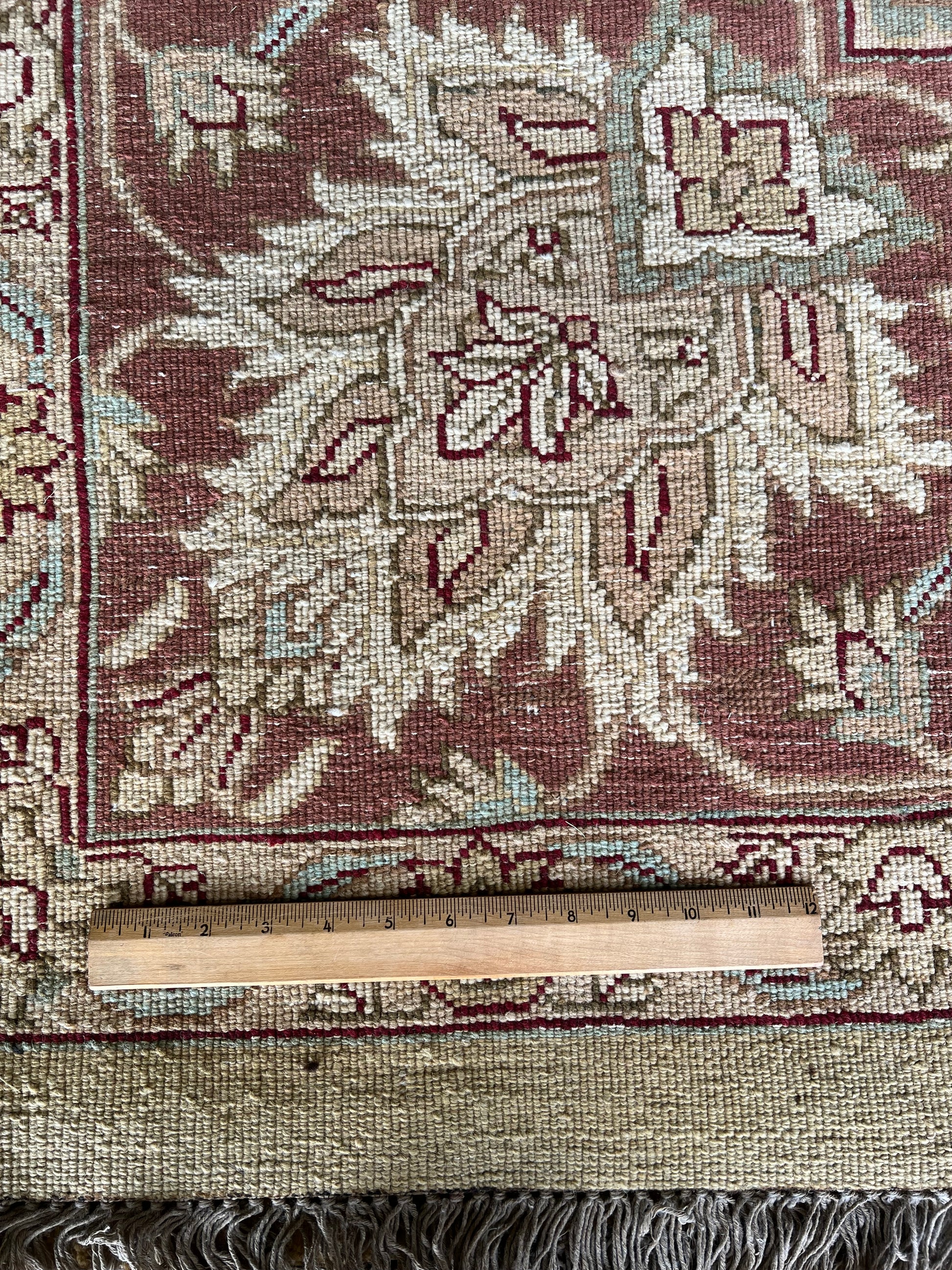 Rugnet only sells hand-knotted new, vintage and antique rugs in excellent condition. It is normal to notice slight imperfections in knotting and coloration in vintage and antique rugs. These rugs were designed to be imperfect. Imperfections add to the individuality and value of the rug.