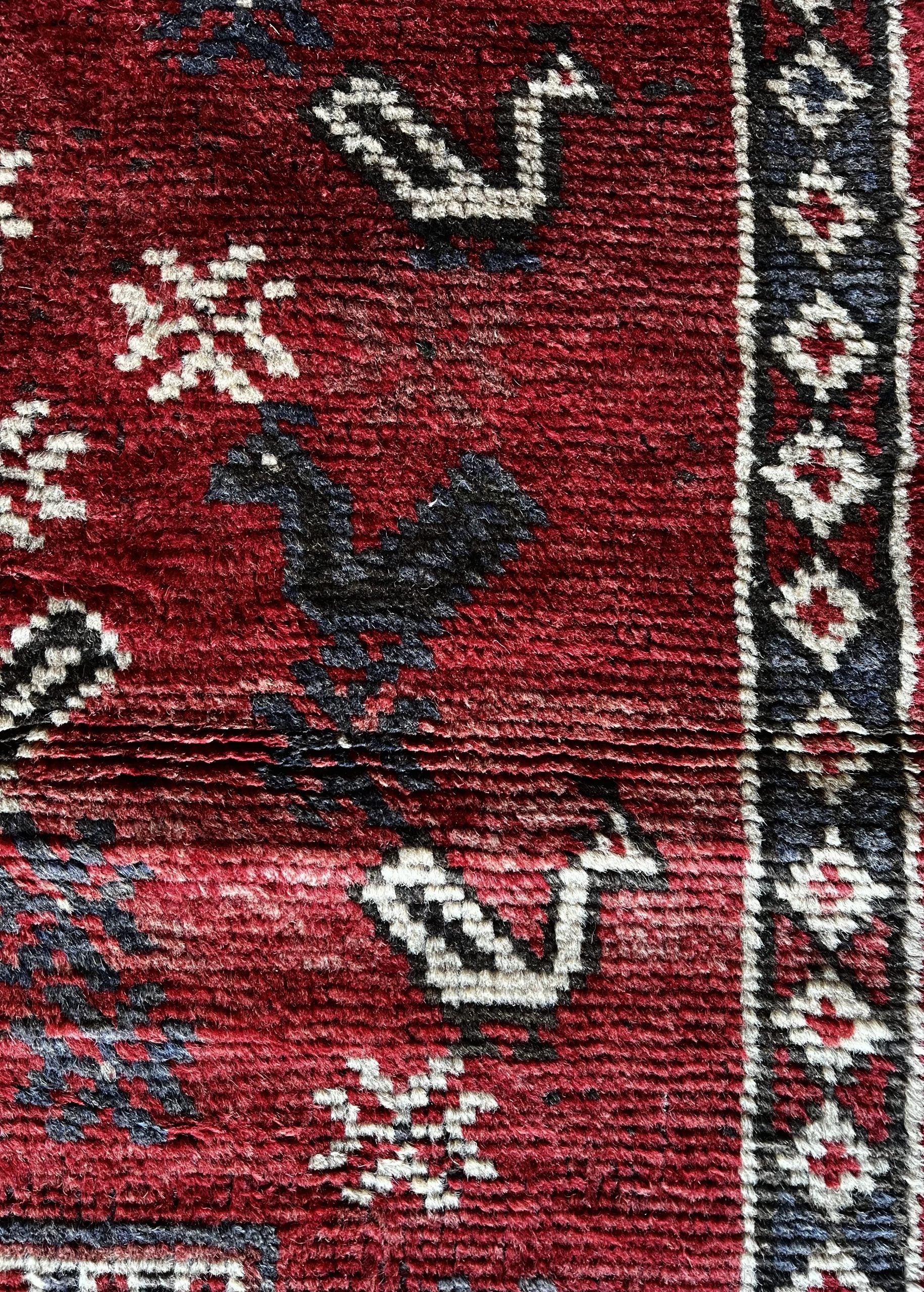 Rugnet only sells hand-knotted new, vintage and antique rugs in excellent condition. It is normal to notice slight imperfections in knotting and coloration in vintage and antique rugs. These rugs were designed to be imperfect. Imperfections add to the individuality and value of the rug.