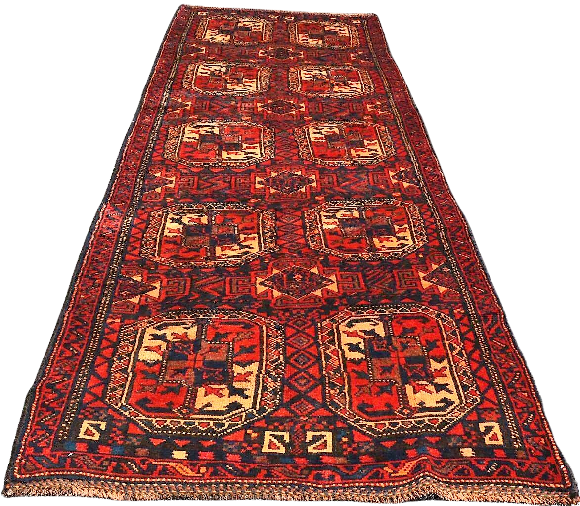 Minka is a charming Kurdish runner from the 1930s, featuring the classic Turkoman Bakhara Gul design. Woven by hand, likely by a nomadic woman using hand-spun wool from her family’s own sheep in the warp, weft, and pile, it reflects the care and craftsmanship of traditional nomadic weaving. Hand-dyed with natural pigments in rich reds, accented with black and gold, Minka is a one-of-a-kind artisan rug full of character.